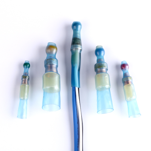 Разъем обеспечивает защиту соединения проводов от воздействия атмосферный явлений. Герметичные термоусаживаемые разъемы для соединения пайкой имеют цветовую маркировку для облегчения идентификации по размерам (см. таблицу с размерным рядом)